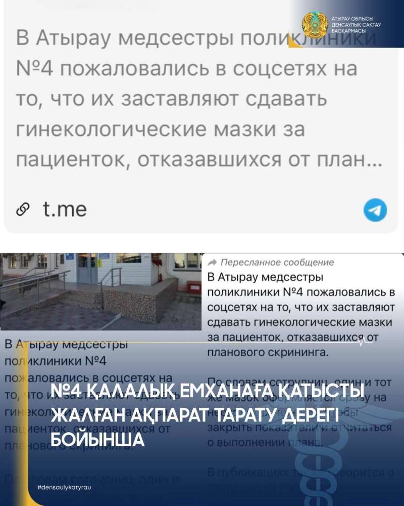 "Қазіргі уақытта әлеуметтік желілерде жарияланып жатқан ақпараттардың шындыққа жанаспайтыны мәлімделеді. Аталған мәліметтер анонимді түрде таратылған және нақты дәлелдермен расталмаған. Сенімсіз ақпараттың таралуы емхананың іскерлік беделіне нұқсан келтіріп, медициналық қызметкерлердің қалыпты жұмыс істеуіне кедергі келтіруде. Бұл әрекеттер жалған ақпарат тарату және жала жабу белгілерін қамтиды. Осыған байланысты, аталған деректер бойынша Қазақстан Республикасының қолданыстағы заңнамасына сәйкес құзырлы органдарға ресми арыз жолдау жұмыстары жүргізіліп жатыр" делінген мәлімдемеде.